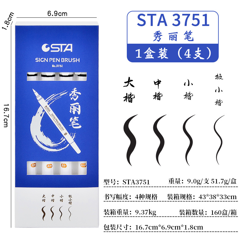 斯塔3751秀麗筆水性顏料防水防曬色軟頭抄經筆大中小楷練字筆