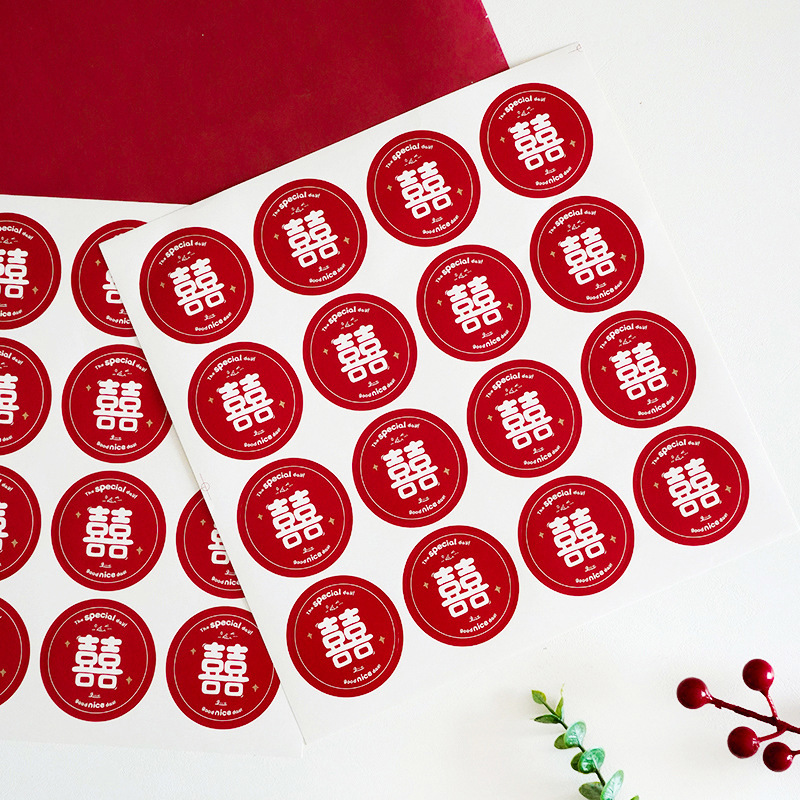結婚小喜字網紅不乾膠喜字貼紙喜糖盒雞蛋氣球喜字貼婚房裝飾批發