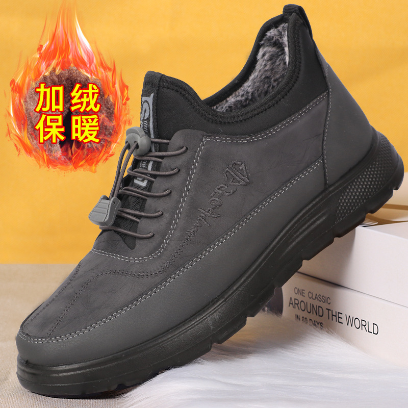 Factory Wholesale Winter Men's Cotton Shoes New Waterproof Rabbit Hair Warm Polyurethane Fleece Thick Sports Shoes Men