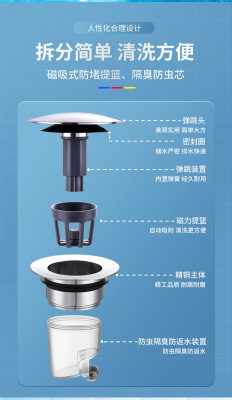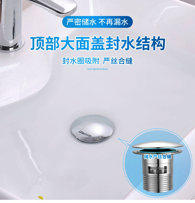 Basin Hand Basin Magnetic Water Leaking Plug Face Basin Large Panel Plug Drainage Device Squeeze Type Full Copper Spring Core