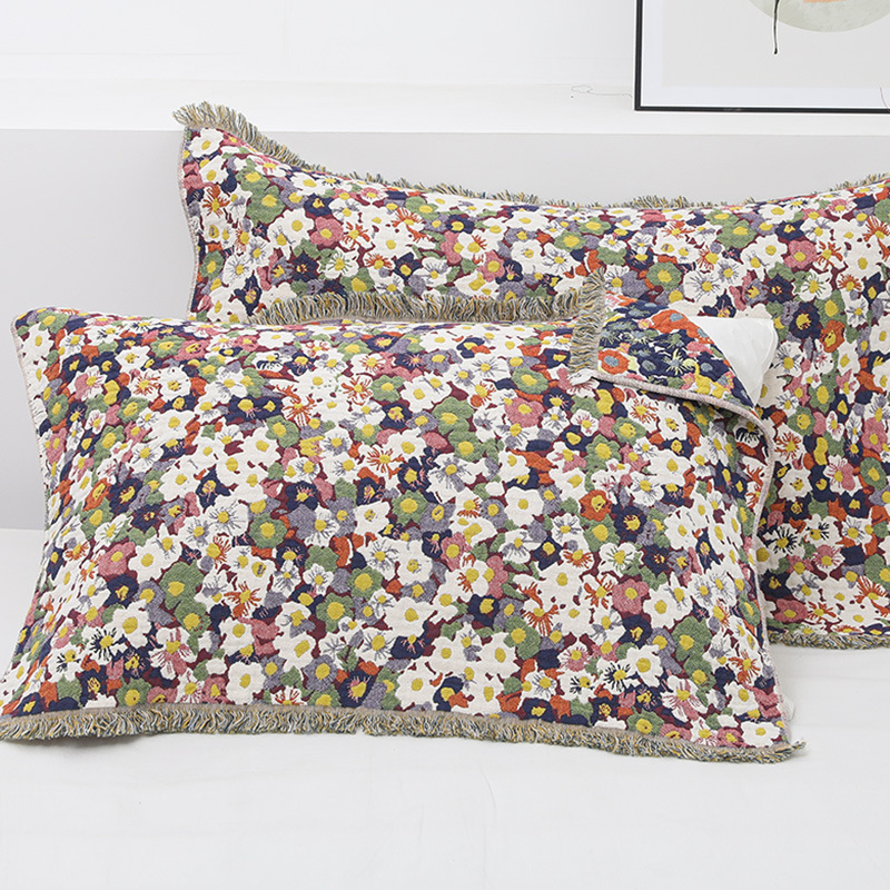 Pair of pure cotton thickened gauze tassel pillow cover floral couple European style pillow cover for students soft and skin-friendly for all seasons