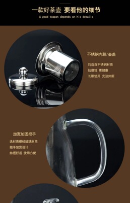 批發高硼硅玻璃茶壺不鏽鋼過濾花茶泡茶壺加厚玻璃茶壺茶水分離