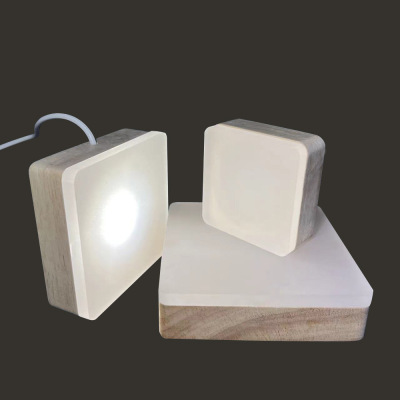 Yonii Thick Board Square Wood Craft Night Lamp Square Frosted Atmosphere Lamp Wooden Base Warm Light Aromatherapy Base