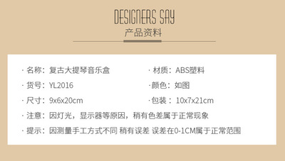 YL2016 Violin Guitar Music Box Music Box Swing Violin Person Classical Nostalgic Retro Style Gift