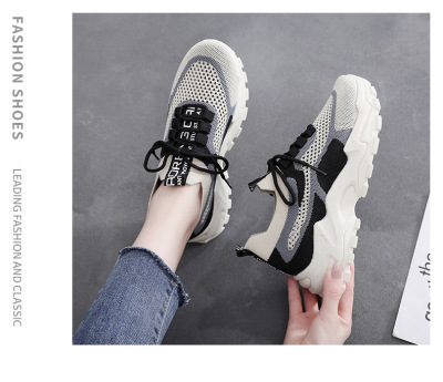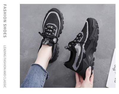 Thick-soled unisex father's shoes 2024 cross-border new large size woven casual shoes for women foreign trade wholesale student running shoes