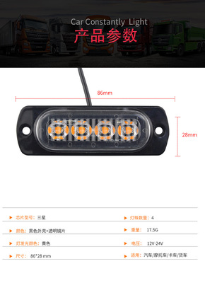 Night Flame Car LED Ultra Thin Side Light 4LED Signal Light Truck/Cargo Warning Light 12V-24V