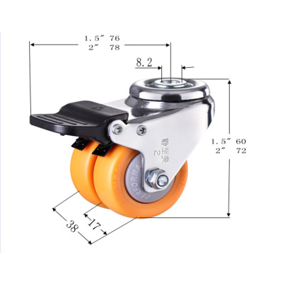 1.5 inch 2 inch hole top double row silent swivel caster load-bearing double wheel double bearing wheel with brake