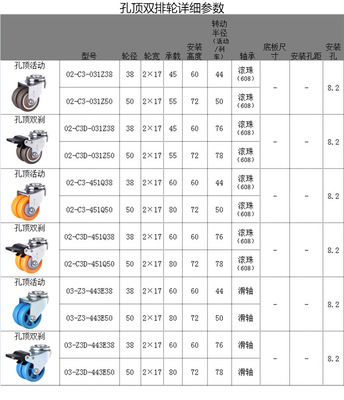 Model: Brown 2-inch rubber hole top double row wheels