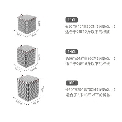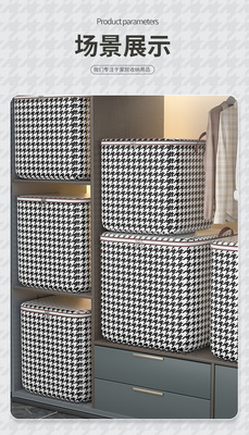 Houndstooth cotton quilt storage bag foldable bag zipper large capacity dustproof storage basket for clothes and sundries