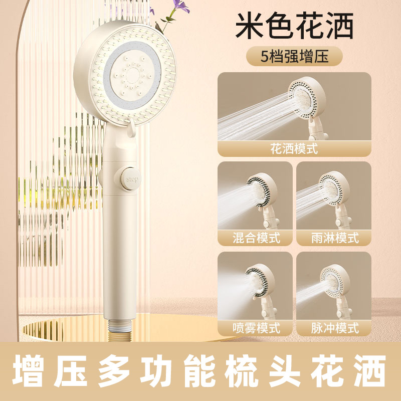 Cross-border massage combing shower head supercharged five-speed shower handheld nozzle water heater bathing and combing dual-purpose fluffy head