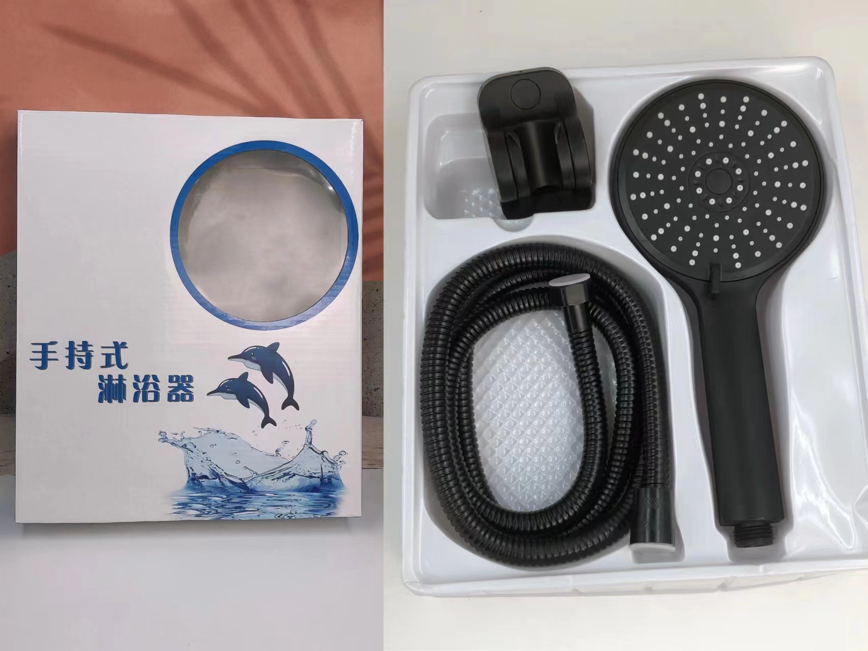 Specifications: Black five-speed large panel + 2-meter black shower pipe + punch-free base