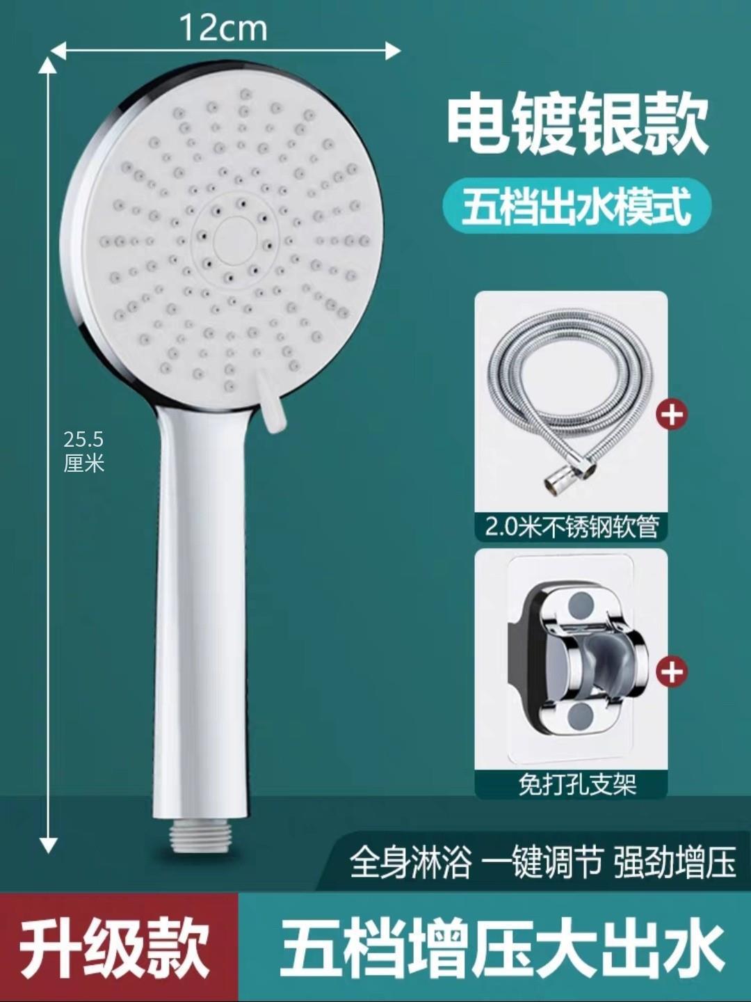 Specifications: Silver five-speed large panel + 2-meter silver shower pipe + punch-free base