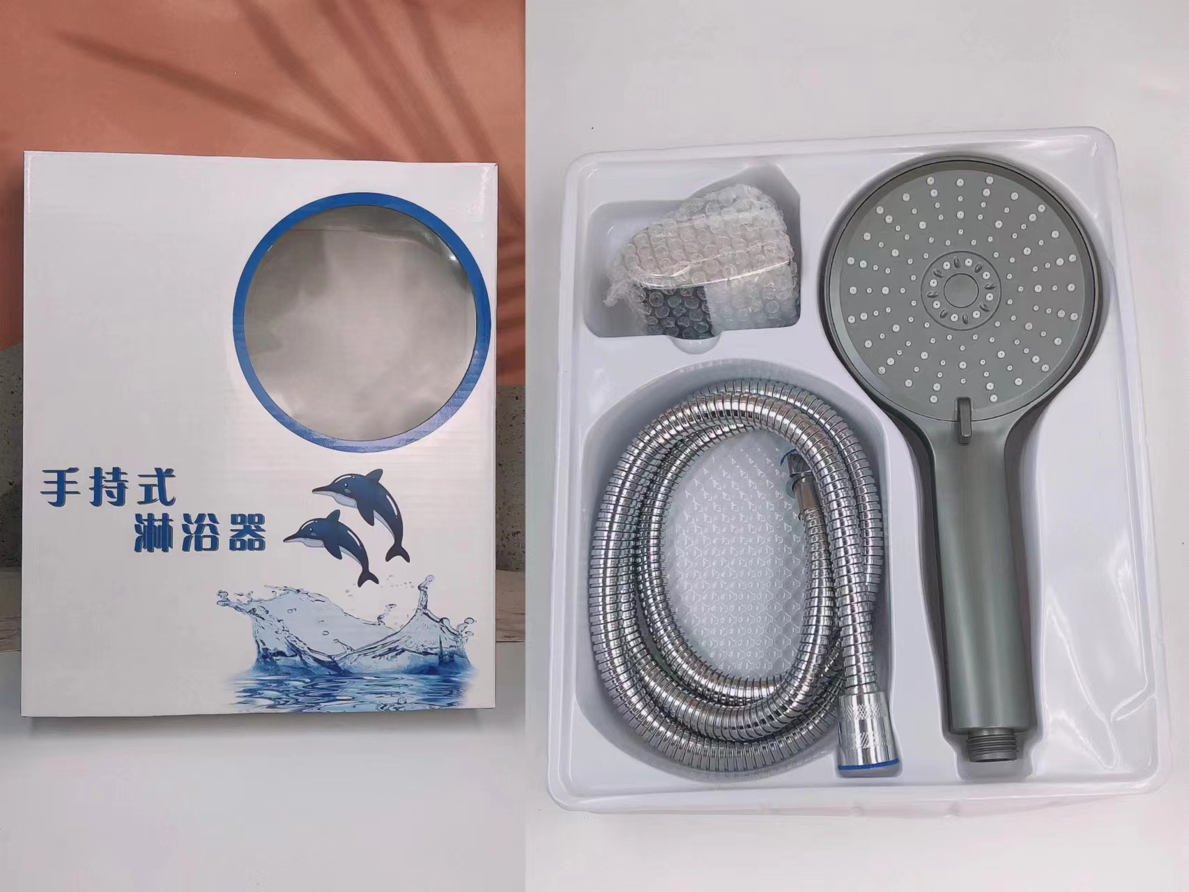 Specifications: Gun gray five-speed large panel + 2-meter silver shower pipe + punch-free base