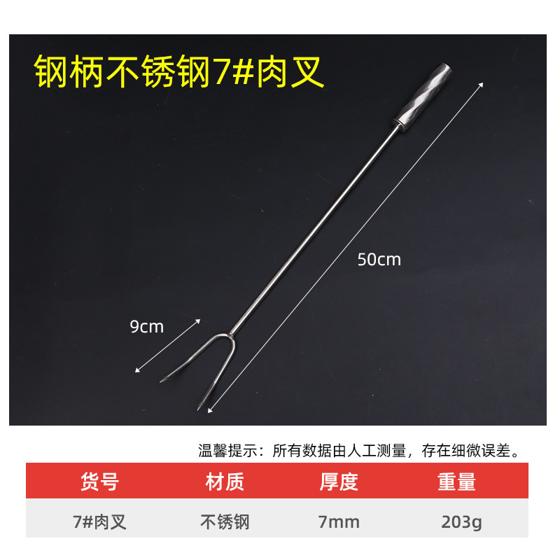 Steel-handled stainless steel 7# extended meat fork