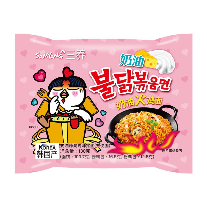 Packaging Specification: 130g Pack of Extra Spicy Chicken Flavor Noodles, Creamy Flavor