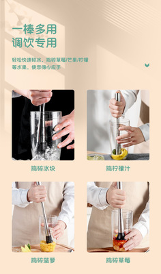 不鏽鋼搗汁棒奶茶店手打檸檬茶專用工具碎冰錘搗汁棒檸檬壓錘壓汁