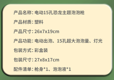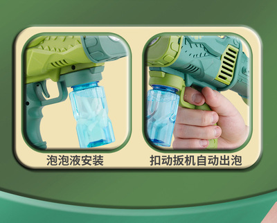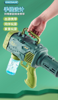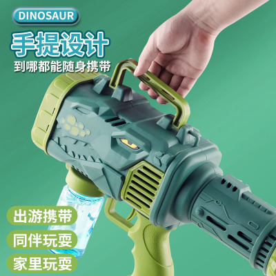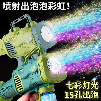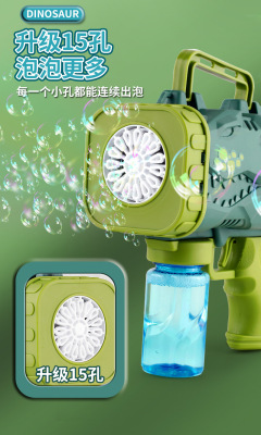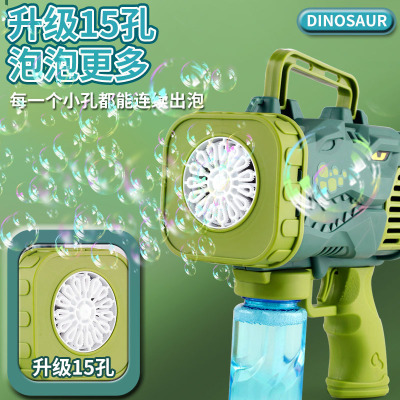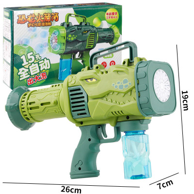 Cross-border fully automatic 15-hole dinosaur bubble gun children's electric handheld rocket launcher water-proof bubble blowing machine toy