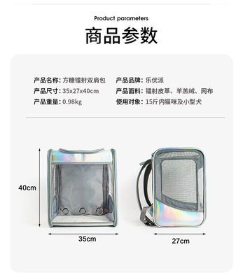 Leyoupai Double Shoulder Laser Cat Bag Large Space Pet Backpack Outdoor Portable Large Space Pet Cat Bag