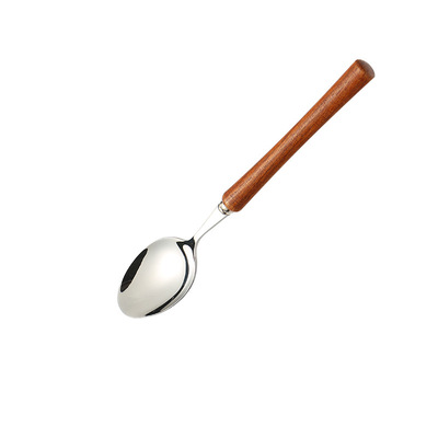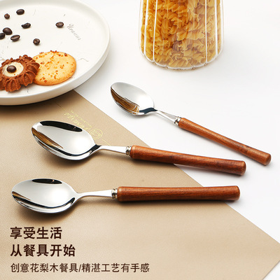 復古花梨木 實心木柄小蠻腰造型 304不鏽鋼刀叉勺輕奢家居甜品勺