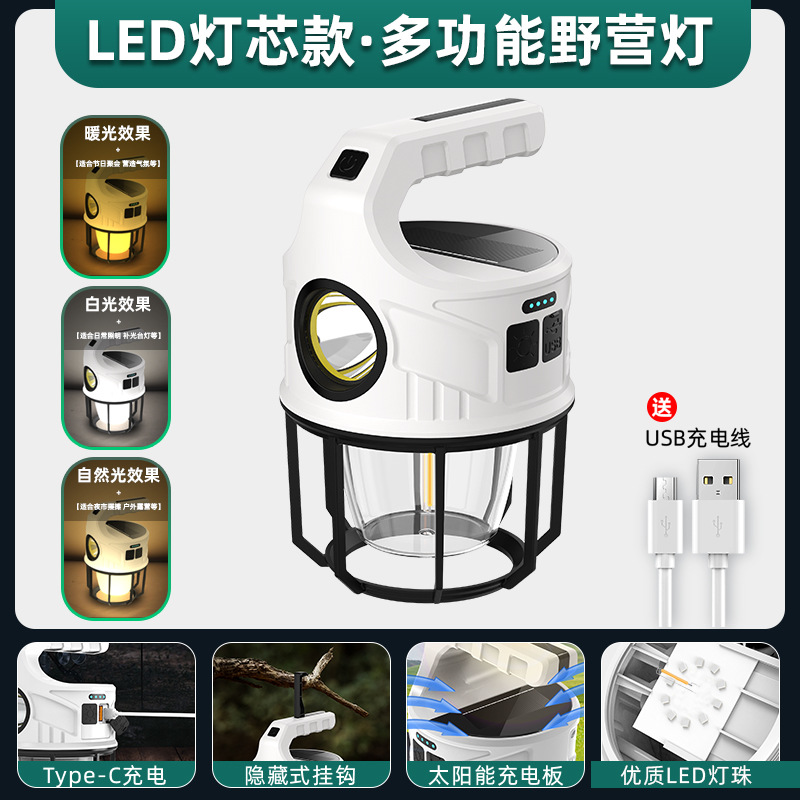 新款太陽能露營燈多功能氛圍燈強光手提燈戶外充電野營應急照明燈