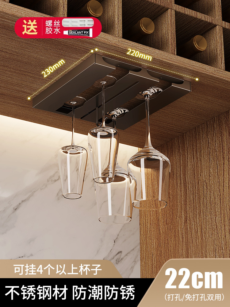 Number of layers (specifications): [Gun Grey] Stainless steel wine glass holder with double slots + single hook (no need for punching/punching)
