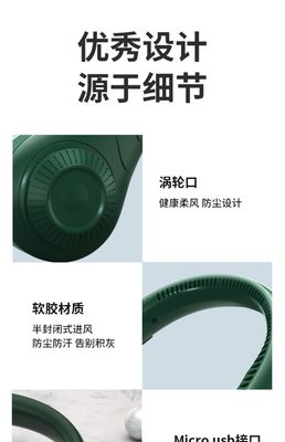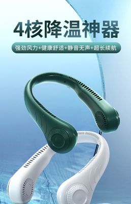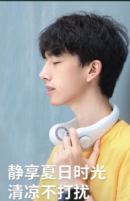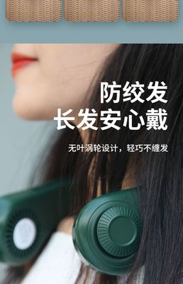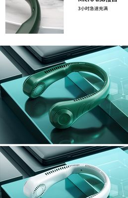 跨境硅膠無葉掛脖風扇 迷你便捷式USB大風力調節掛脖子小風扇