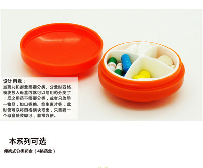 Creative round four-compartment plastic medicine box portable mini PP medicine box portable medicine box medicine box
