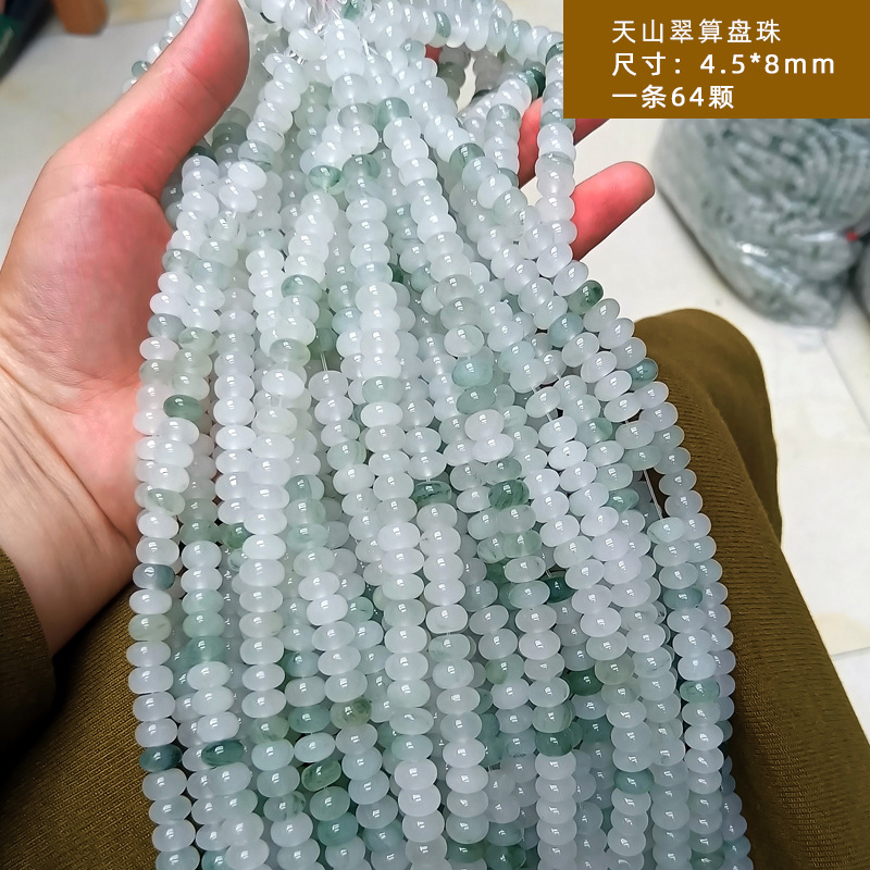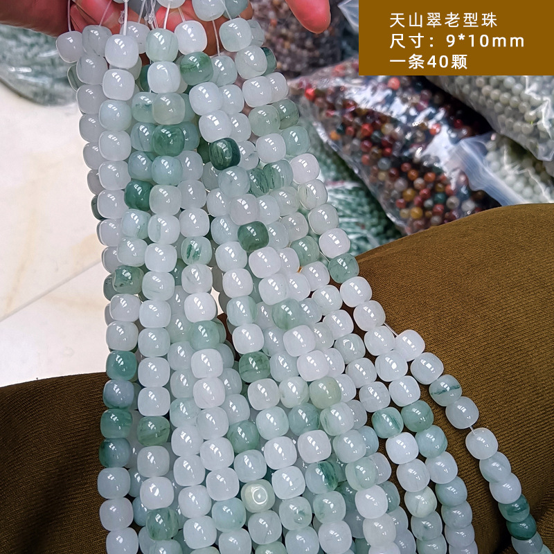 Source Factory Wholesale Xinjiang Tianshan Green Jade Beads, Round Beads, Ice Jade Jade Beads, Old Style Beads, Semi-Finished DIY Matching