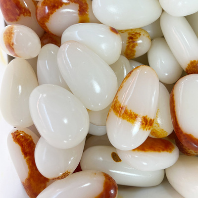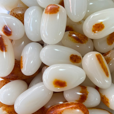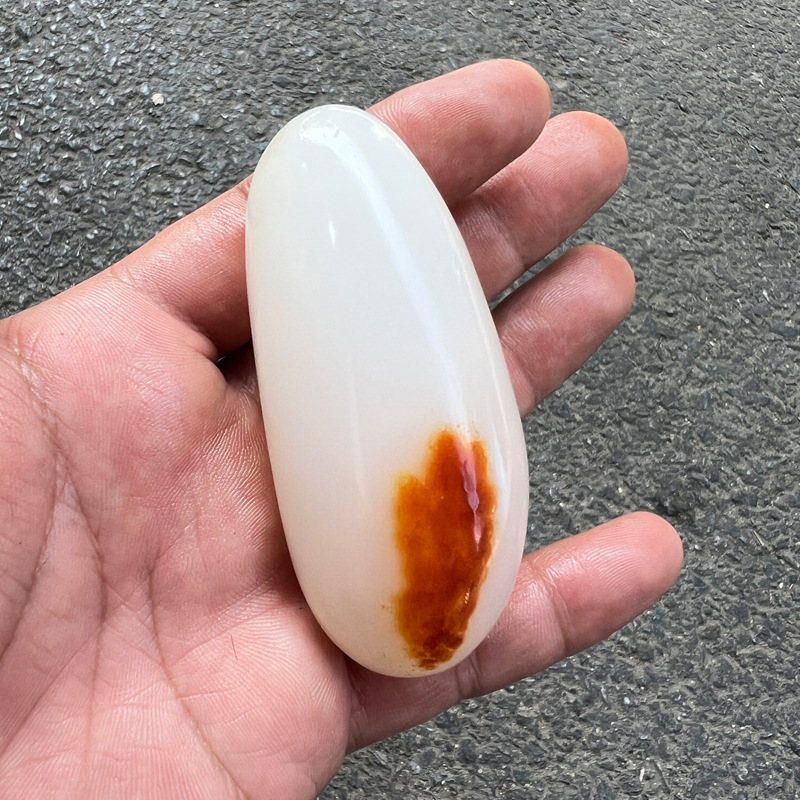 Afghan Jade Handle Piece with Seed Material, Natural Shape Handle Piece, Skin-Colored for Men, Handheld Item, Mutton Fat White Jade Elliptical Raw Stone