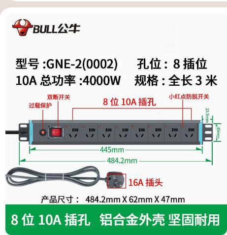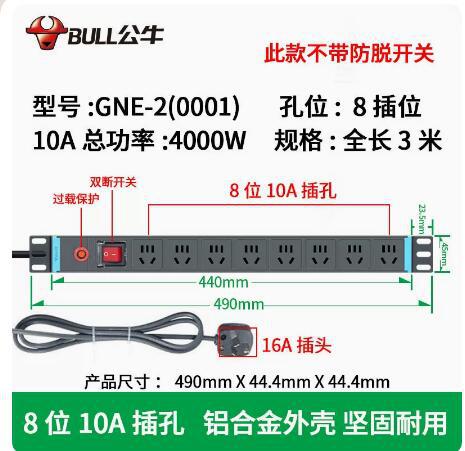 Specifications and models: GNE-108DT1-1.8m 8-bit full 16-bit security lightning protection cabinet socket