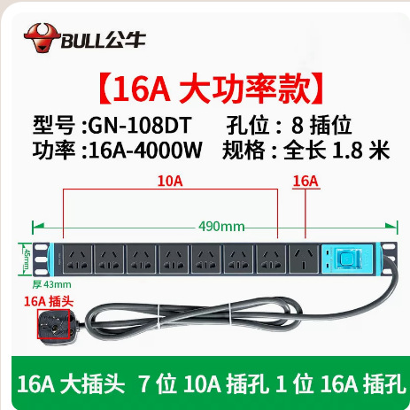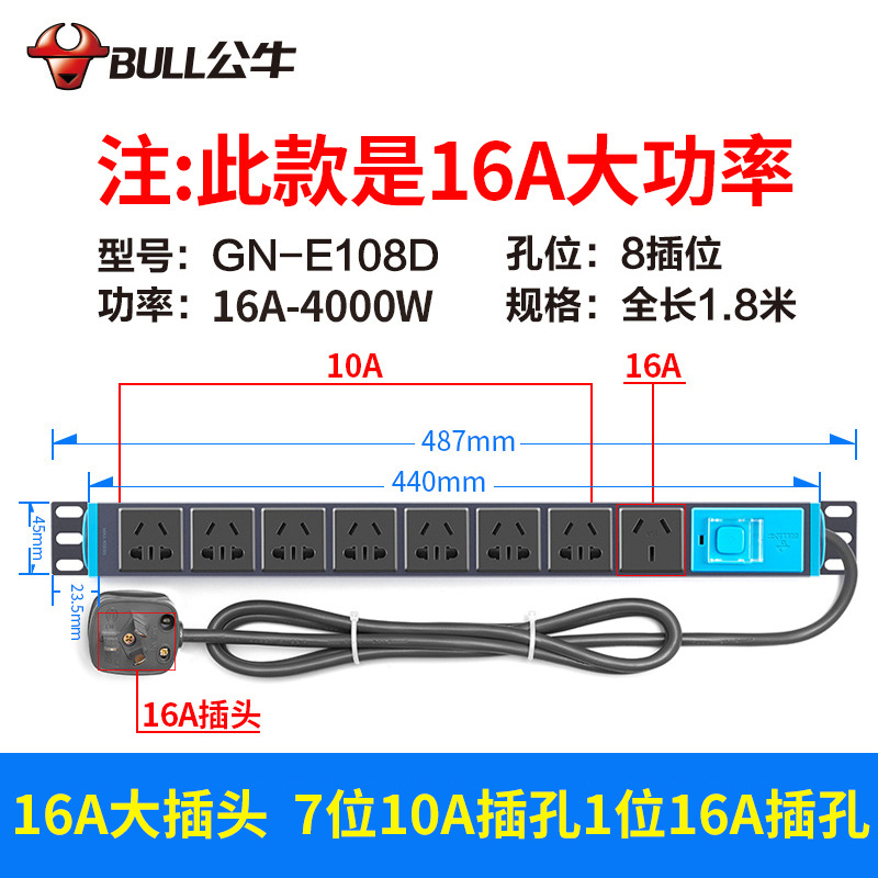 Bull cabinet socket E1080 plug-in board wholesale PDU row plug-in row 19-inch plug-in board 16A Bull pdu socket