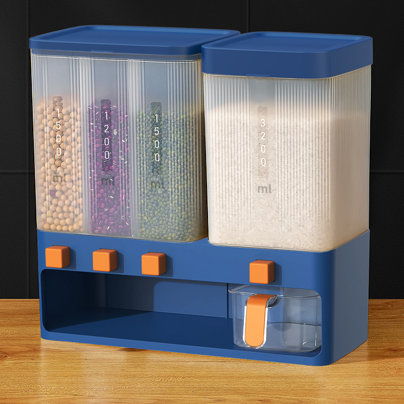 Grid rice bucket household moisture-proof and insect-proof storage classification grain cans measuring multi-functional rice storage box