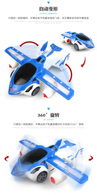 同款 電動變形旋轉飛機汽車 萬向自動燈光音樂變形車兒童玩具