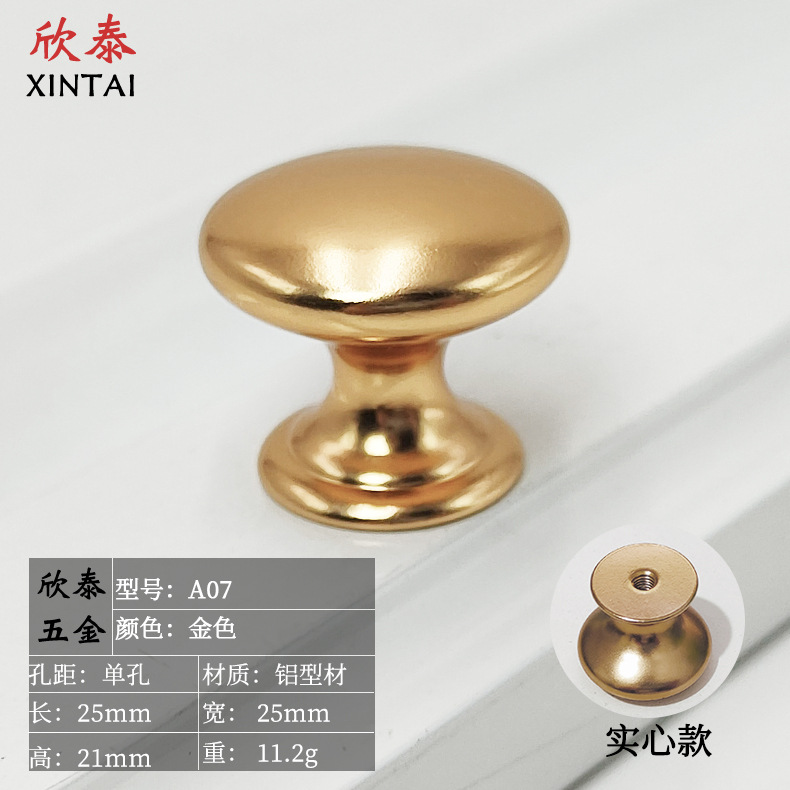 Modern simple black round cabinet drawer solid space aluminum handle Aluminum alloy single hole golden small handle