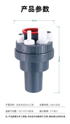 Gray round kitchen sink three-way junction 40/50/75 pipe