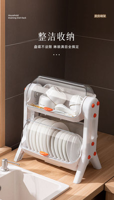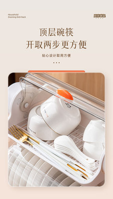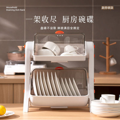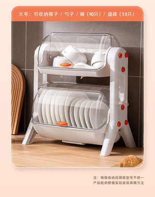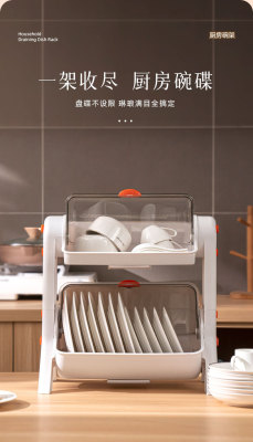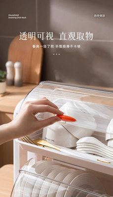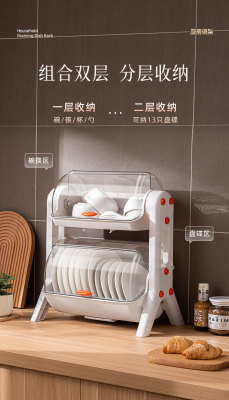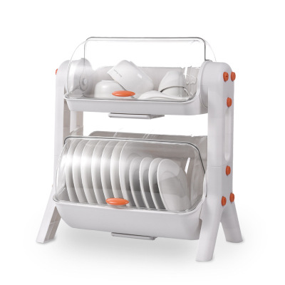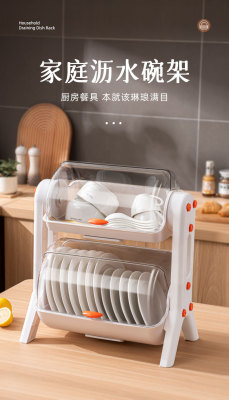 Household layered kitchen double-layer cupboard bowl and chopsticks storage box plastic with lid for dish draining bowl rack storage rack