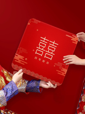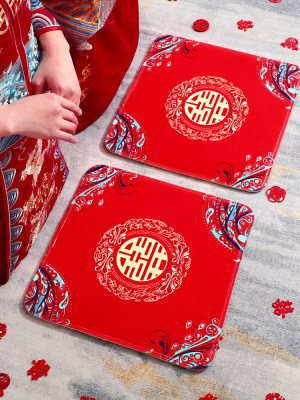 Wedding Supplies: Nuptial Cushion Set for Home, Red, New Couple's Seating Cushion for Wedding, Mouth Renaming Tea Ceremony Mat, Lucky Cushion Pair