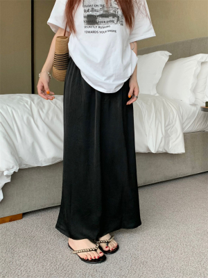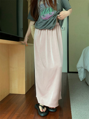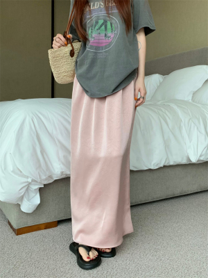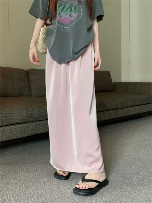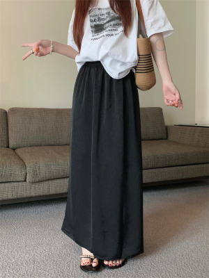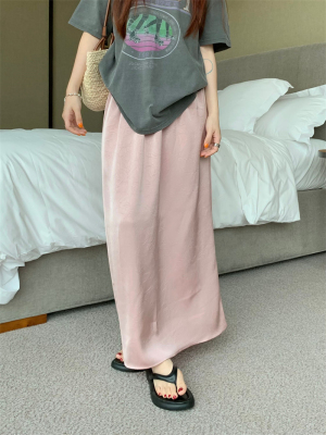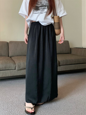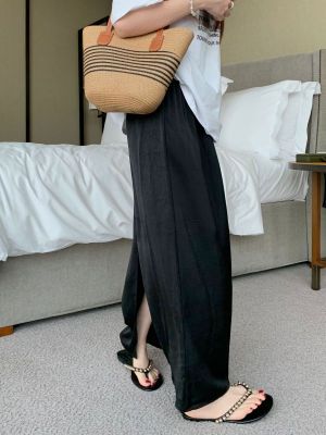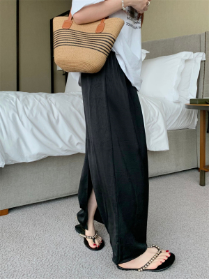 實拍2024~醋酸抓花直筒垂感開叉半身裙長裙