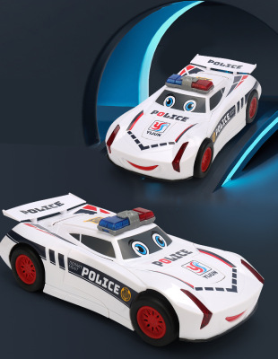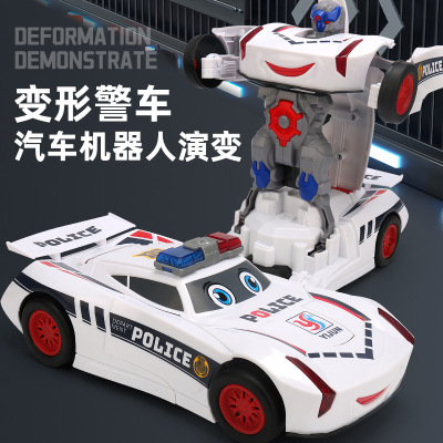 同款卡通自動變形警車萬向燈光音樂機器人兒童玩具地攤批發