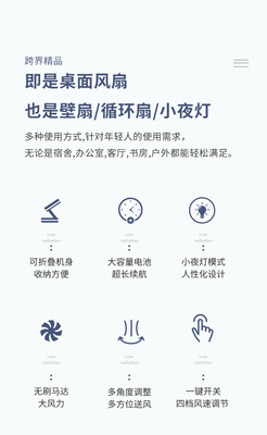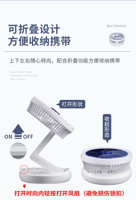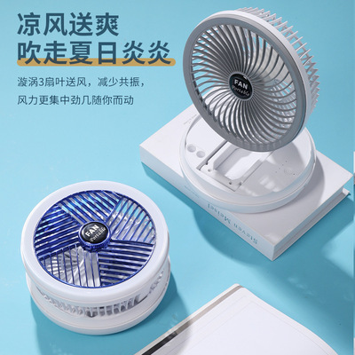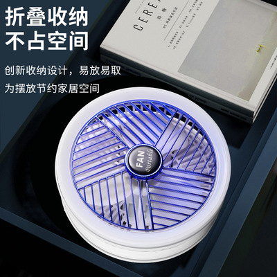 Desktop multi-functional folding fan can store night light, bedroom small fan can be wall-mounted and rechargeable rotating ceiling fan