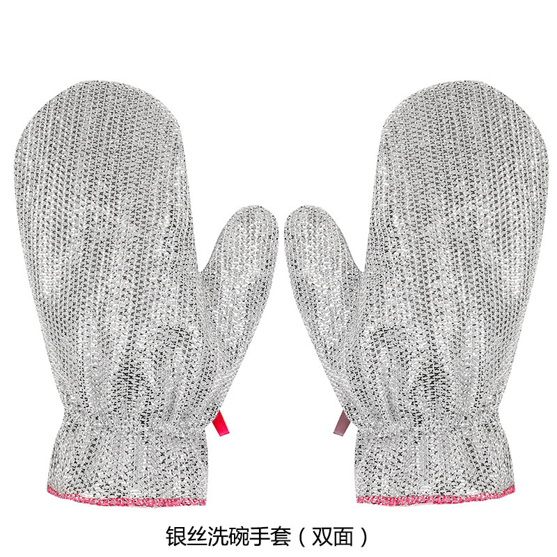 Bamboo Fiber Dishwashing Glove Oil-Proof Silver-Thread Dishwashing Gadget Kitchen Cleaning Oil-Resistant Waterproof Steel Wire Glove (Single Piece)