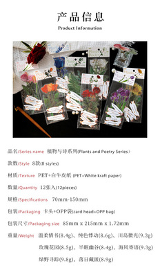 Sugar Poetry PET Sticker Pack Plant and Poetry Series INS Literary Rose DIY Handbook Personalized Material Stickers 8 Types