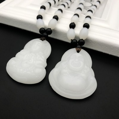 白玉大號觀音彌勒佛項鍊 男女情侶本命佛笑佛可調節白玉項鍊