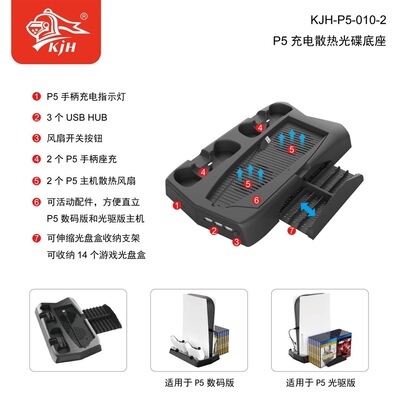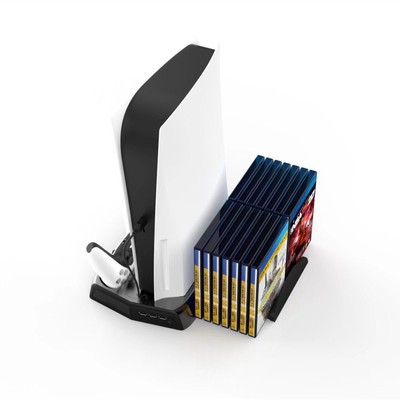 PS5 DualSense / UHD Console Multi-Function Charging & Cooling Fan Base + Storage Tray Bracket with Handle Dual Charging