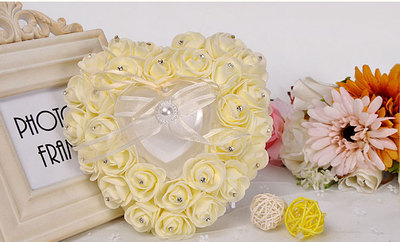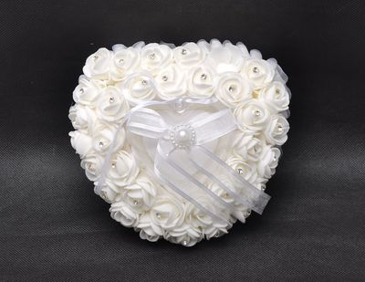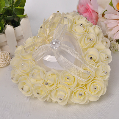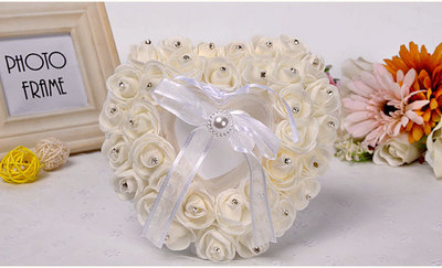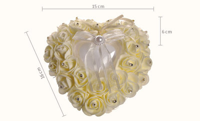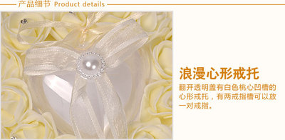 廠家直供西式婚慶用品心形戒指盒 泡沫玫瑰花鑲鑽新娘戒托