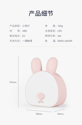 創意萌兔小夜燈少女心充電臥室檯燈床頭兒童卡通燈餵奶睡眠護眼燈