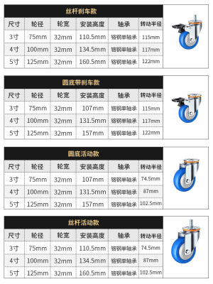 3-inch, 4-inch, and 5-inch industrial swivel heavy-duty casters manufacturer, swivel pulleys, directional screw rods, tow trucks, silent swivel wheels