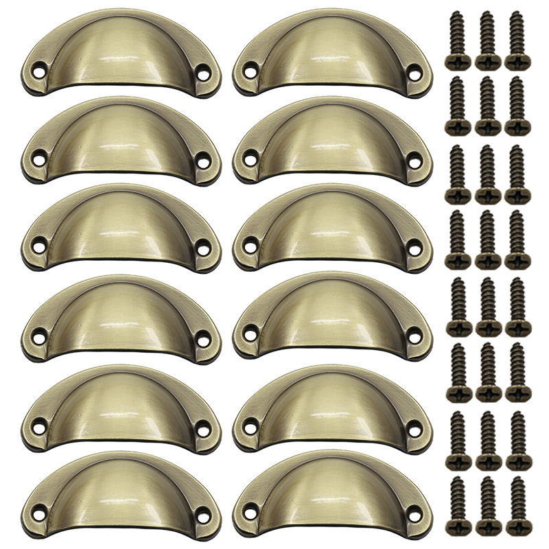 櫥櫃明裝抽屜拉手仿古銅半圓貝殼復古典把手多顏色拉手