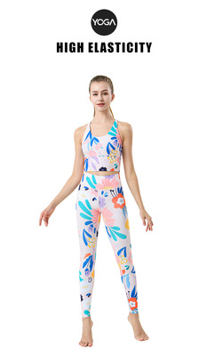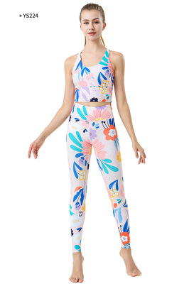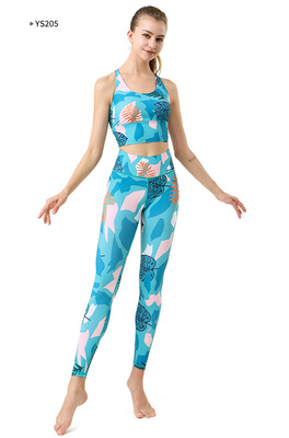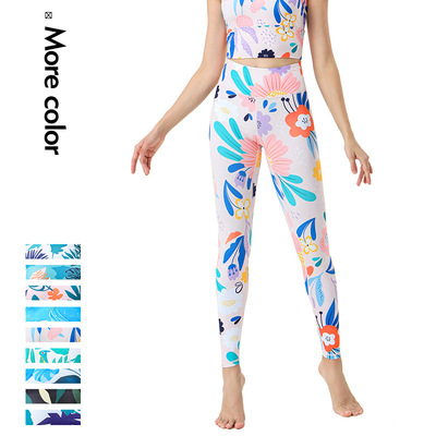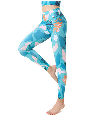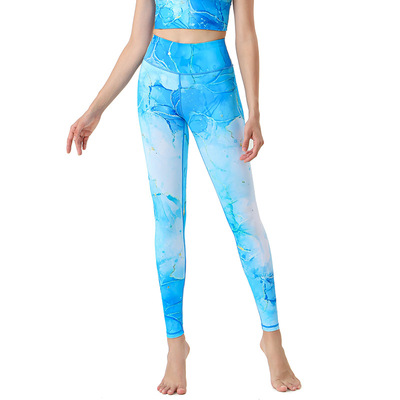 2023歐美新款運動健身褲高腰提臀速干舞蹈瑜伽褲女印花瑜伽服廠家