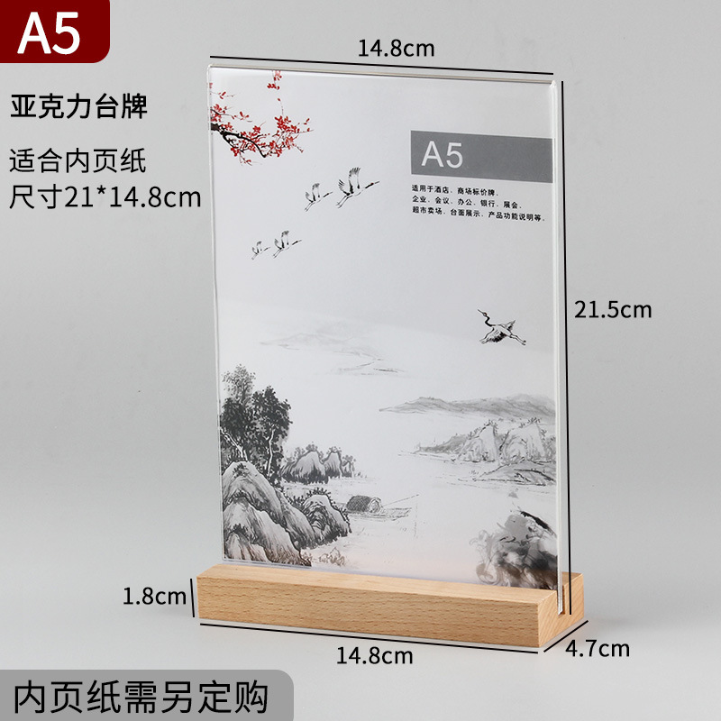 A4櫸木亞克力桌面台牌A5掃碼立牌雙面T型可拆卸台卡 A6廣告價格牌
